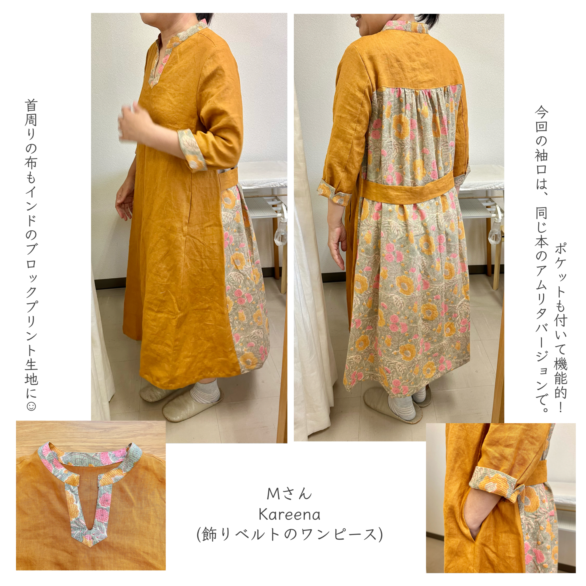 去年の11月22日、そして今年の5月16日の投稿でご紹介した二着に続き、三着目のKareena(飾りベルトのワンピース)を完成されました👏