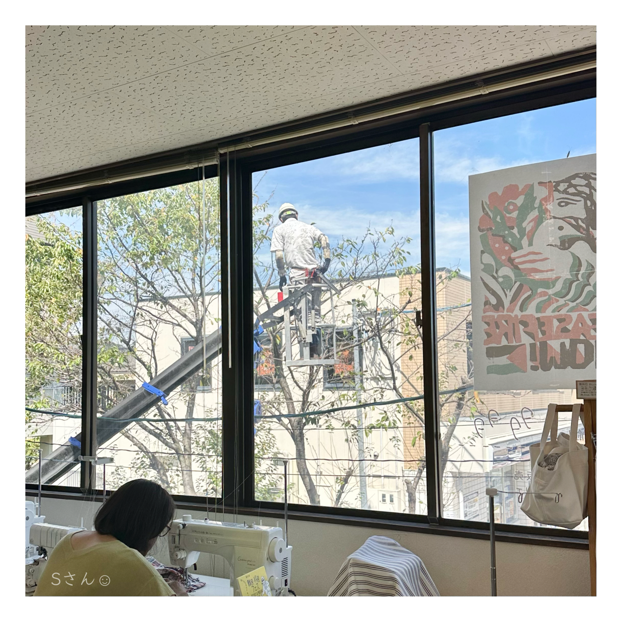 初めて北窓向こうの桜の木の剪定の様子を目にしました。
