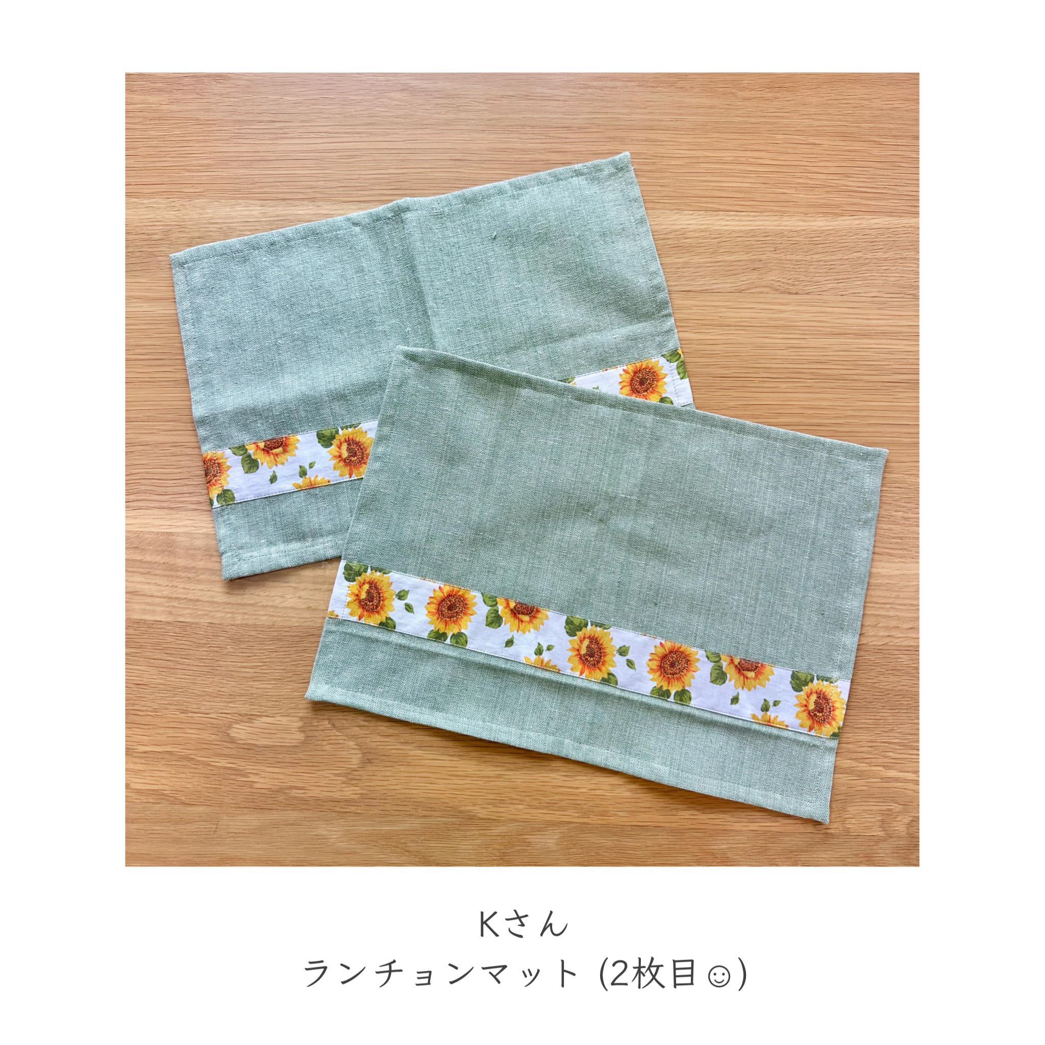 前回、お手持ちの生地と、長いこと眠っていた思い出のリボンの残りを使ってランチョンマットを作られたKさん。