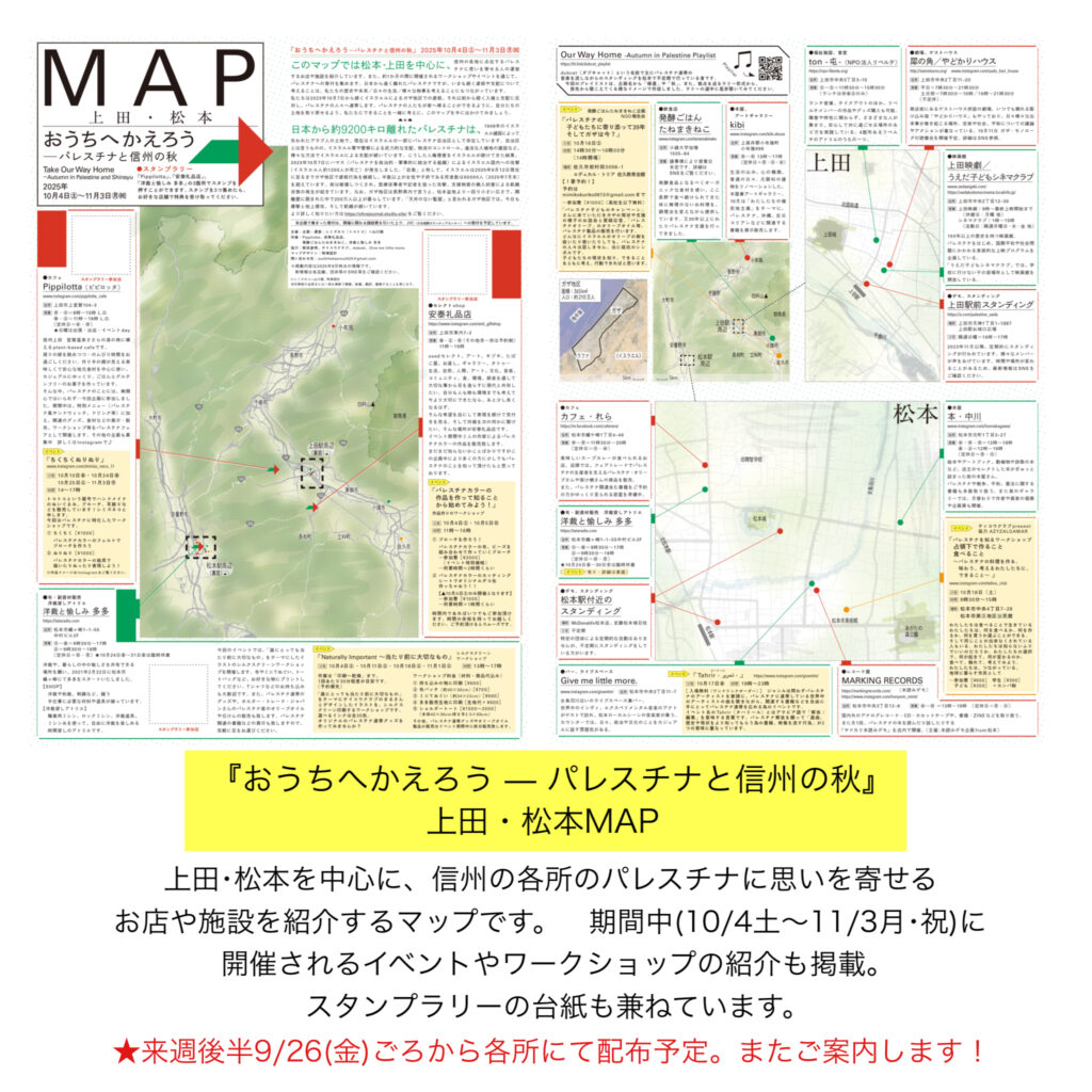 10/4(土)からスタートするイベント『おうちへかえろう – パレスチナと信州の秋』のご案内MAPが昨日お店に届きました。
