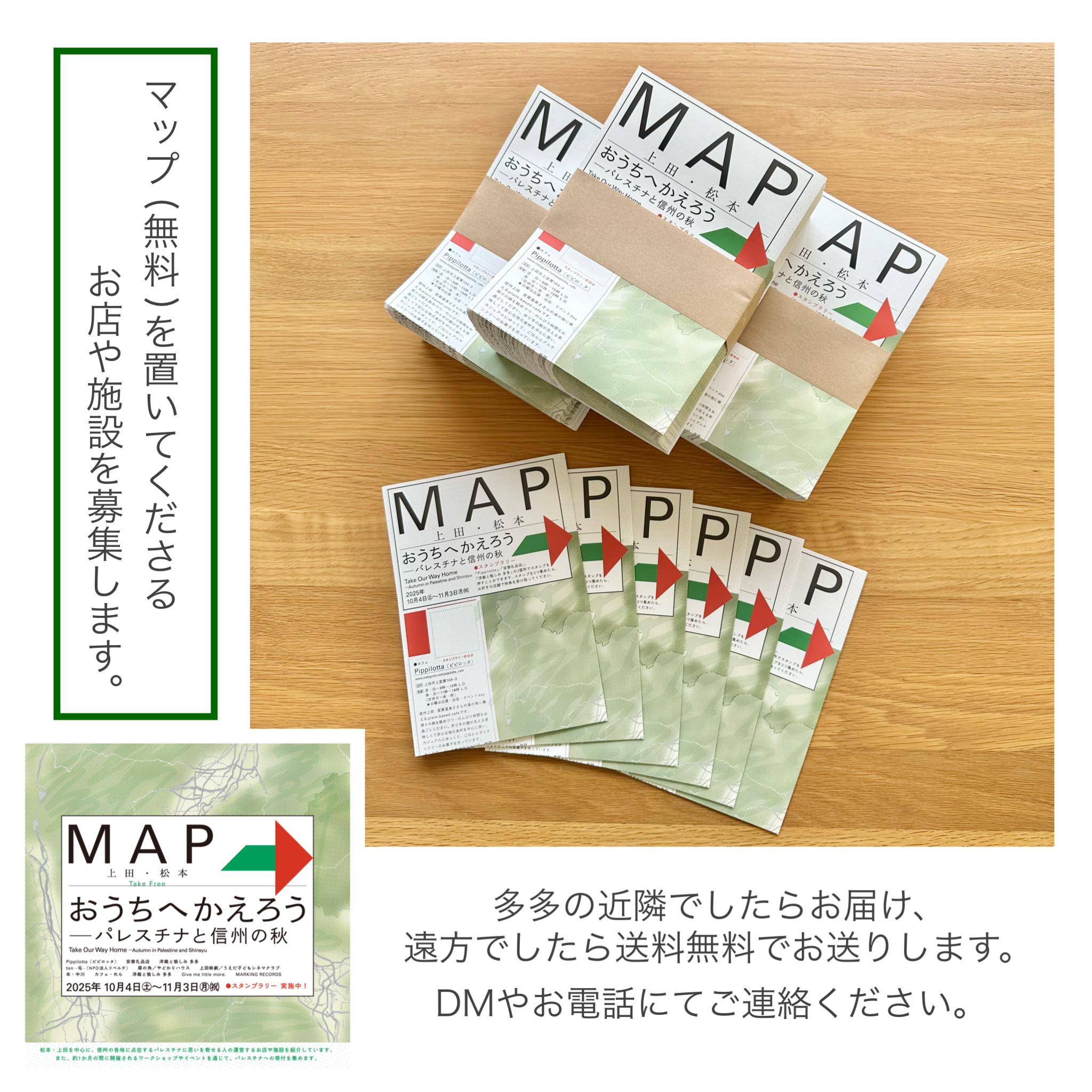 10/4(土)からスタートするイベント『おうちへかえろう – パレスチナと信州の秋』のご案内MAPが昨日お店に届きました。