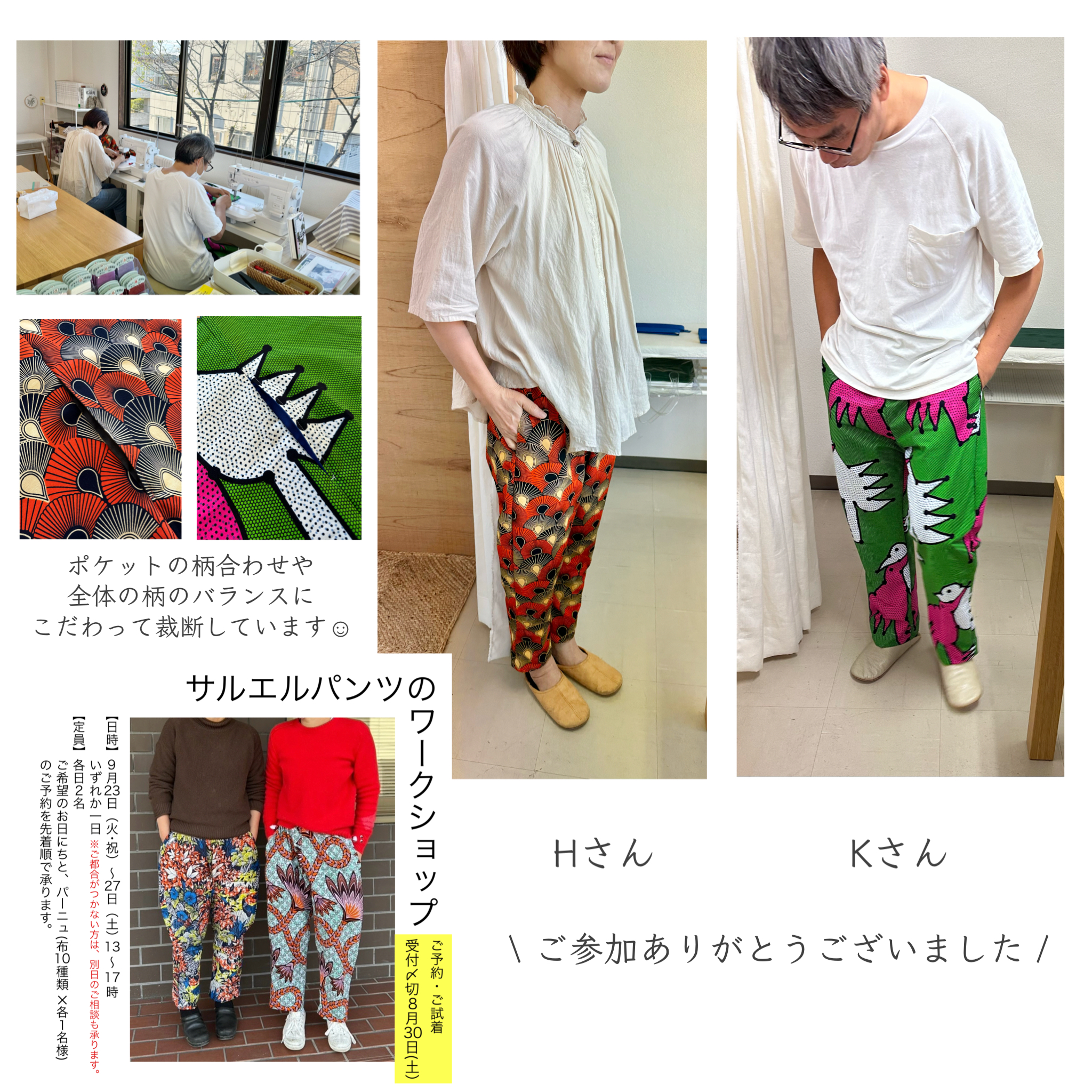 先週の土曜日の午後は、サルエルパンツのワークショップを開催いたしました。