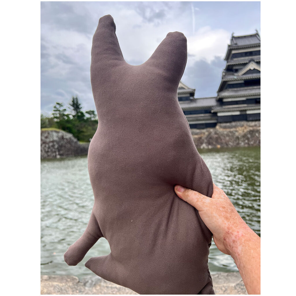 pic3.アトリエの帰り道、完成したねこぐるみを帰り道の松本城で自撮りした写真🐈