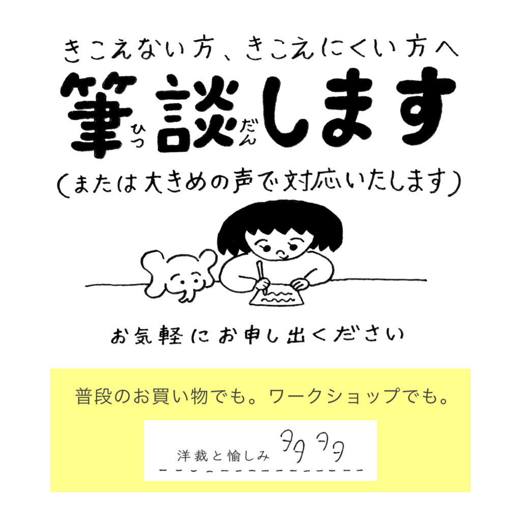 また、ワークショップや普段のお買い物の時に筆談での対応もいたします。
