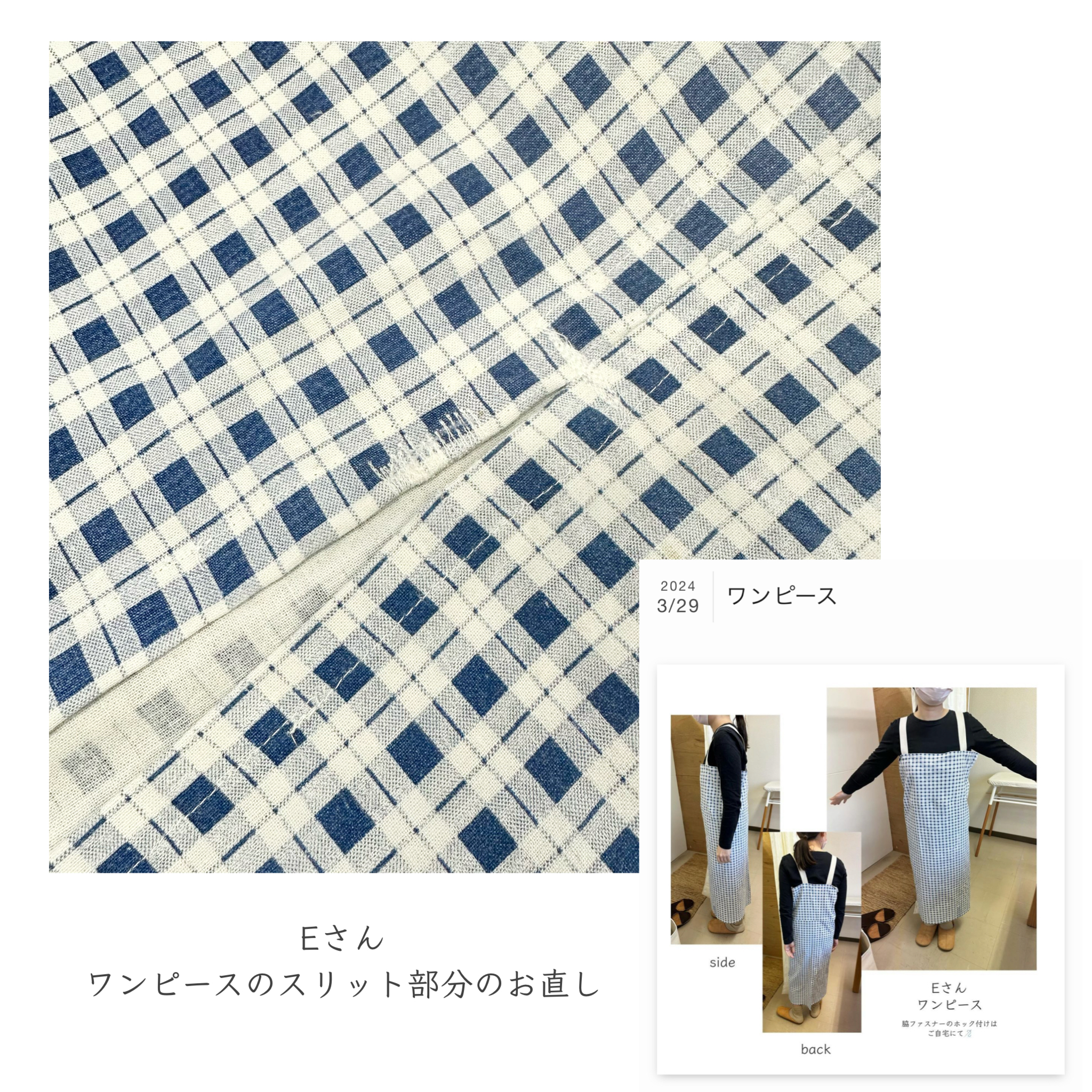 2024年3月29日の投稿でご紹介した、Eさんのワンピース。