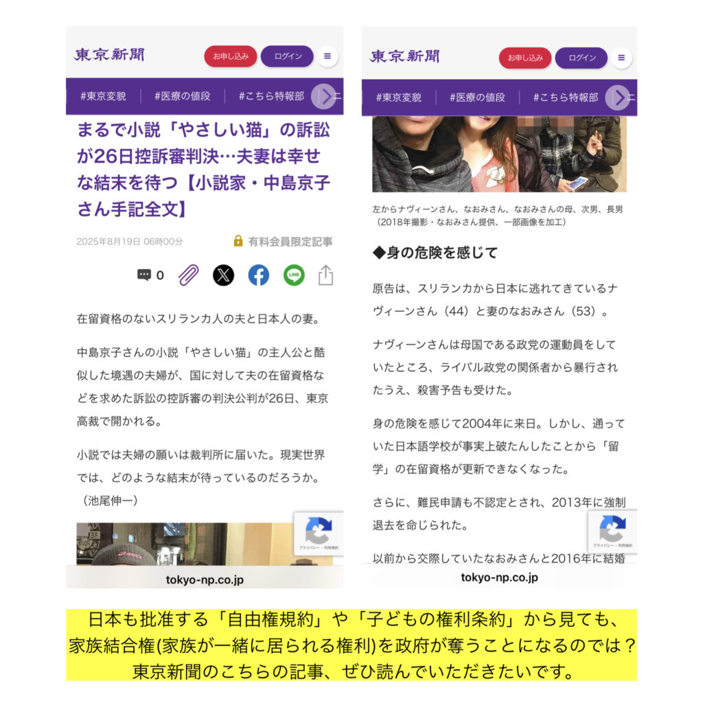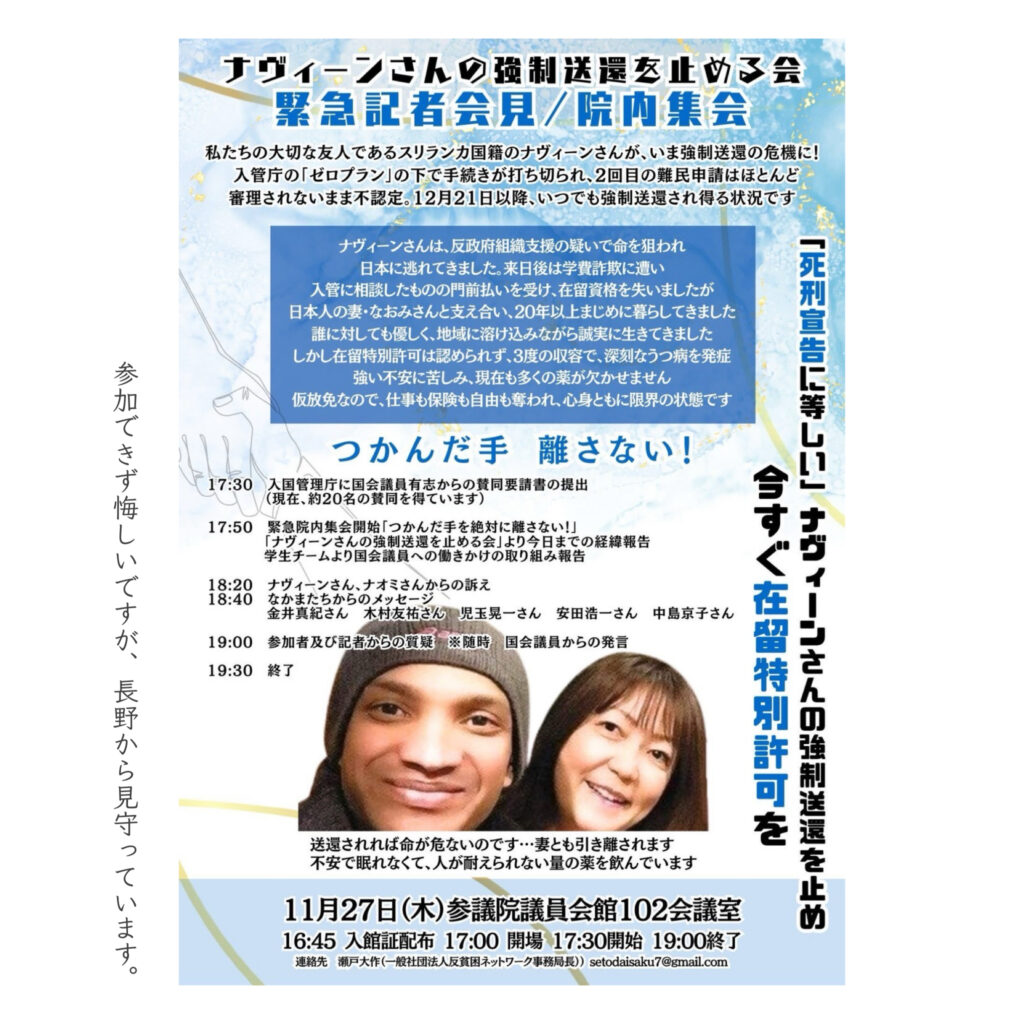 原作を書かれた作家の中島京子さんも驚かれていた、境遇がとてもよく似た実在するご家族のお父さんであるナヴィーンさんが今、強制送還の危機にあります。