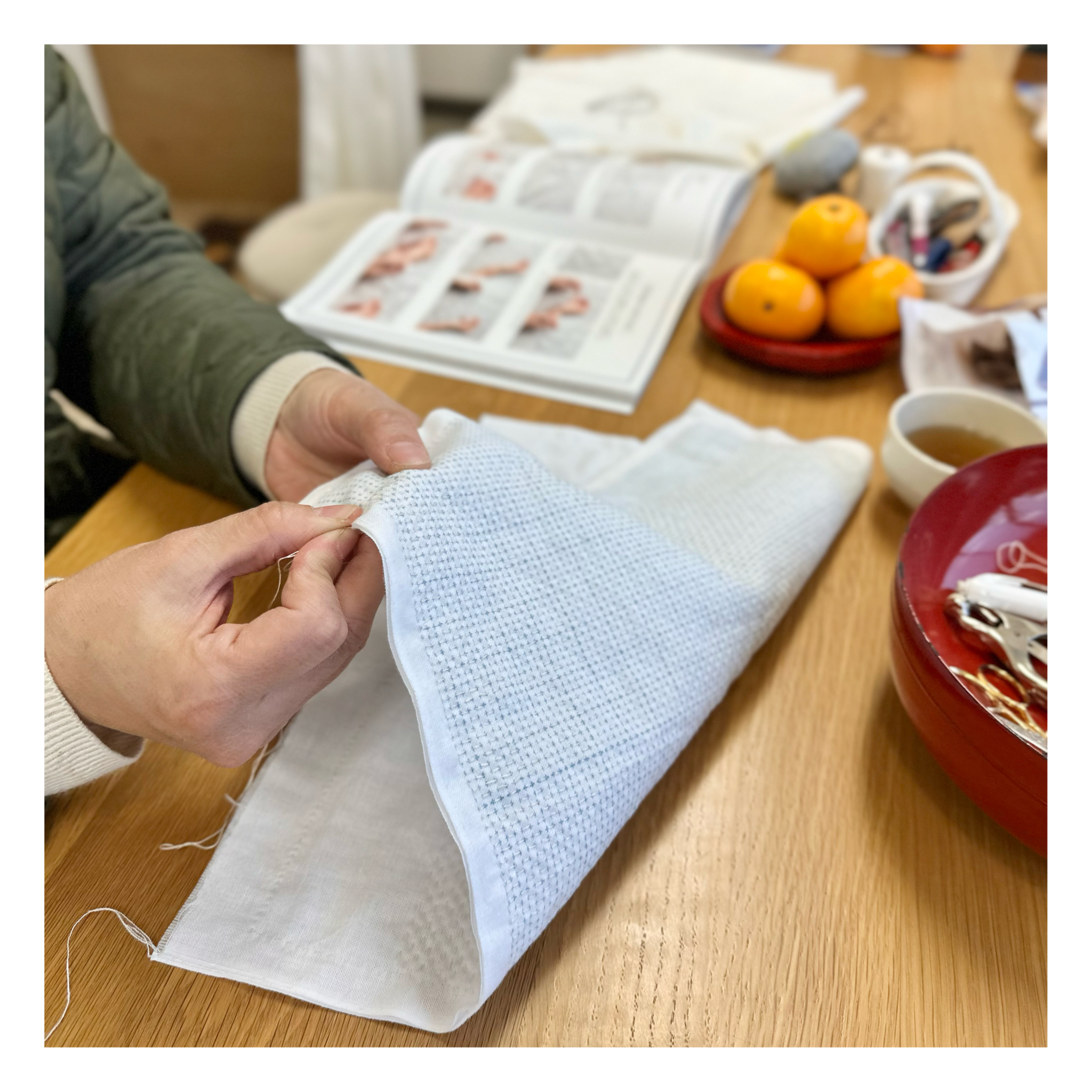 先日、思い描いていたその時間を試してみようと急きょ思い立ち、声を掛けた多多スタッフのお二人と、偶然そのタイミングでご来店くださったMさんと、熱いお茶を飲みながらおしゃべりしたり、ちくちく縫いものをしたり…と過ごしました。
