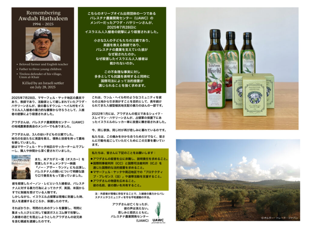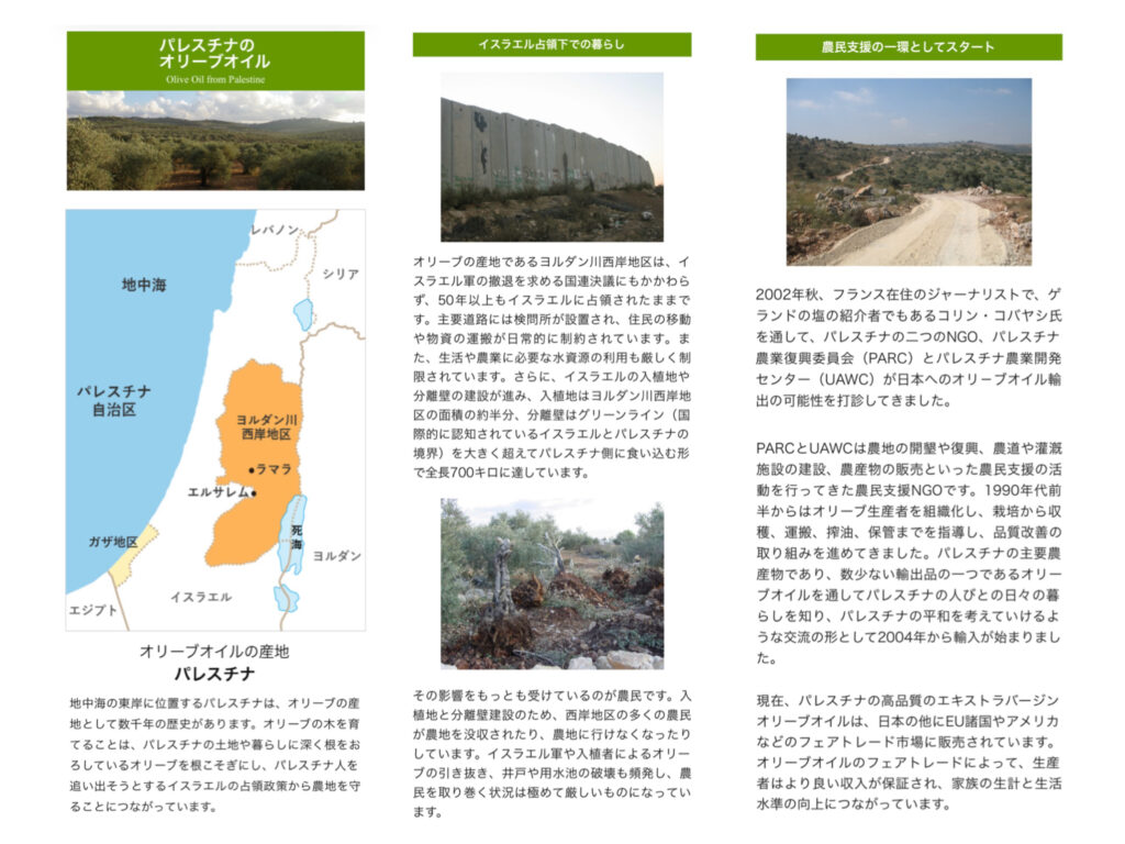 多多では販売が3箱目に入り、30本近くを近隣の方々に迎えていただいたパレスチナのオリーブオイル。