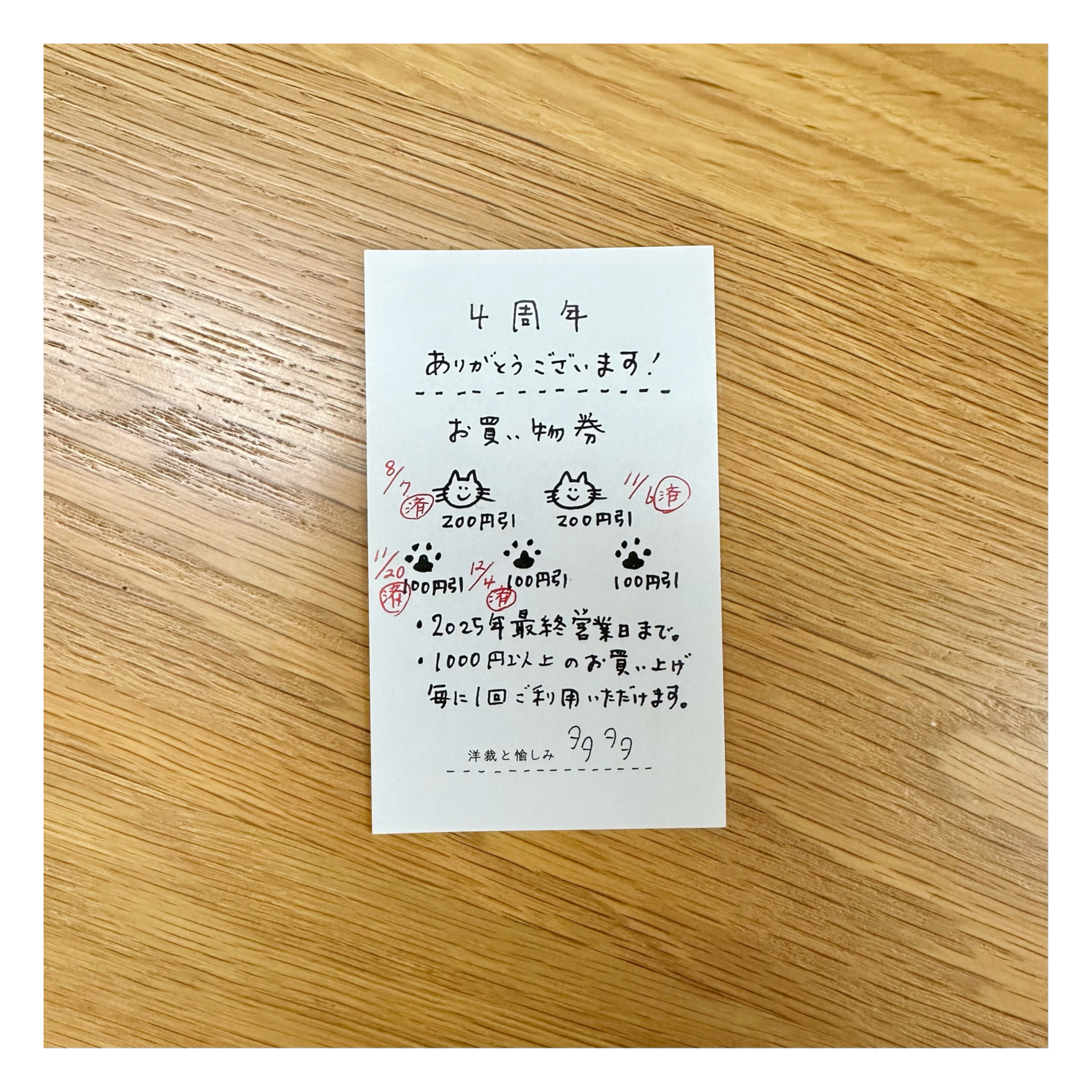 昨日ご来店くださったMさんが、お会計の時に提示されたのは、4周年の時にお配りしていたお買い物券。