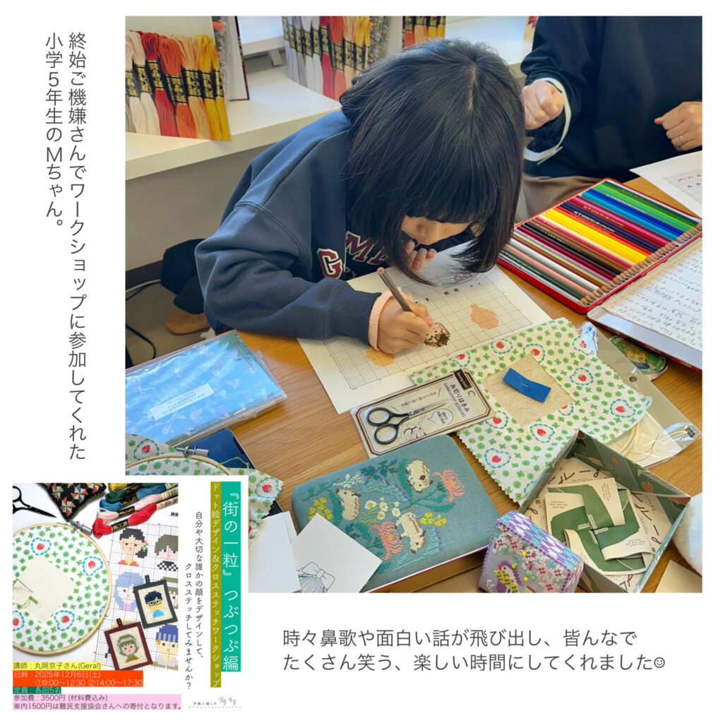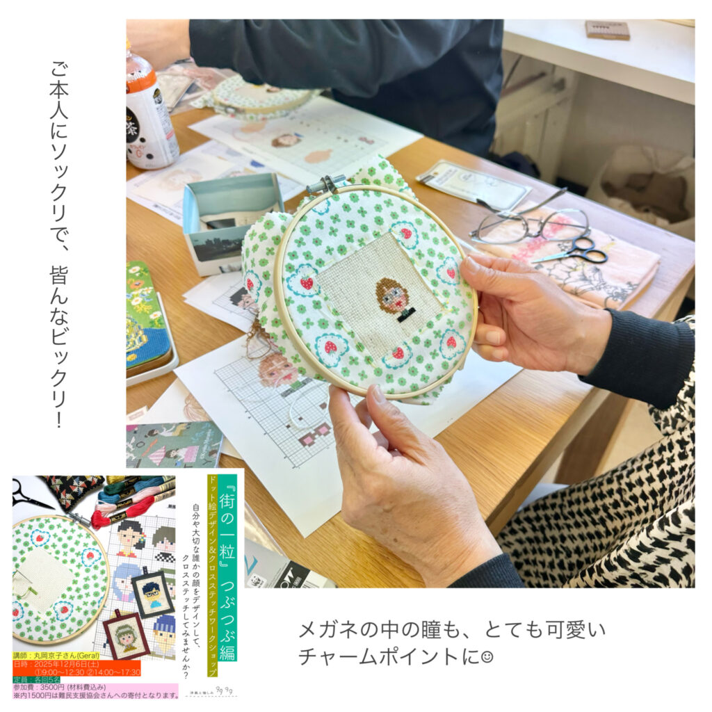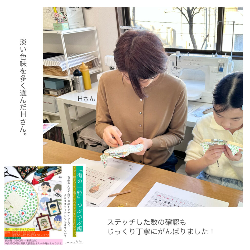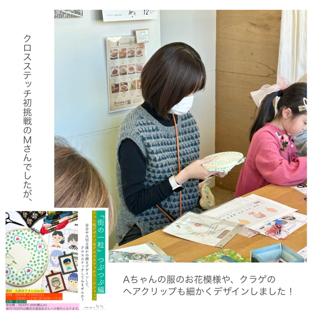 一昨日開催した『街の一粒』つぶつぶ編「クロスステッチワークショップ」。