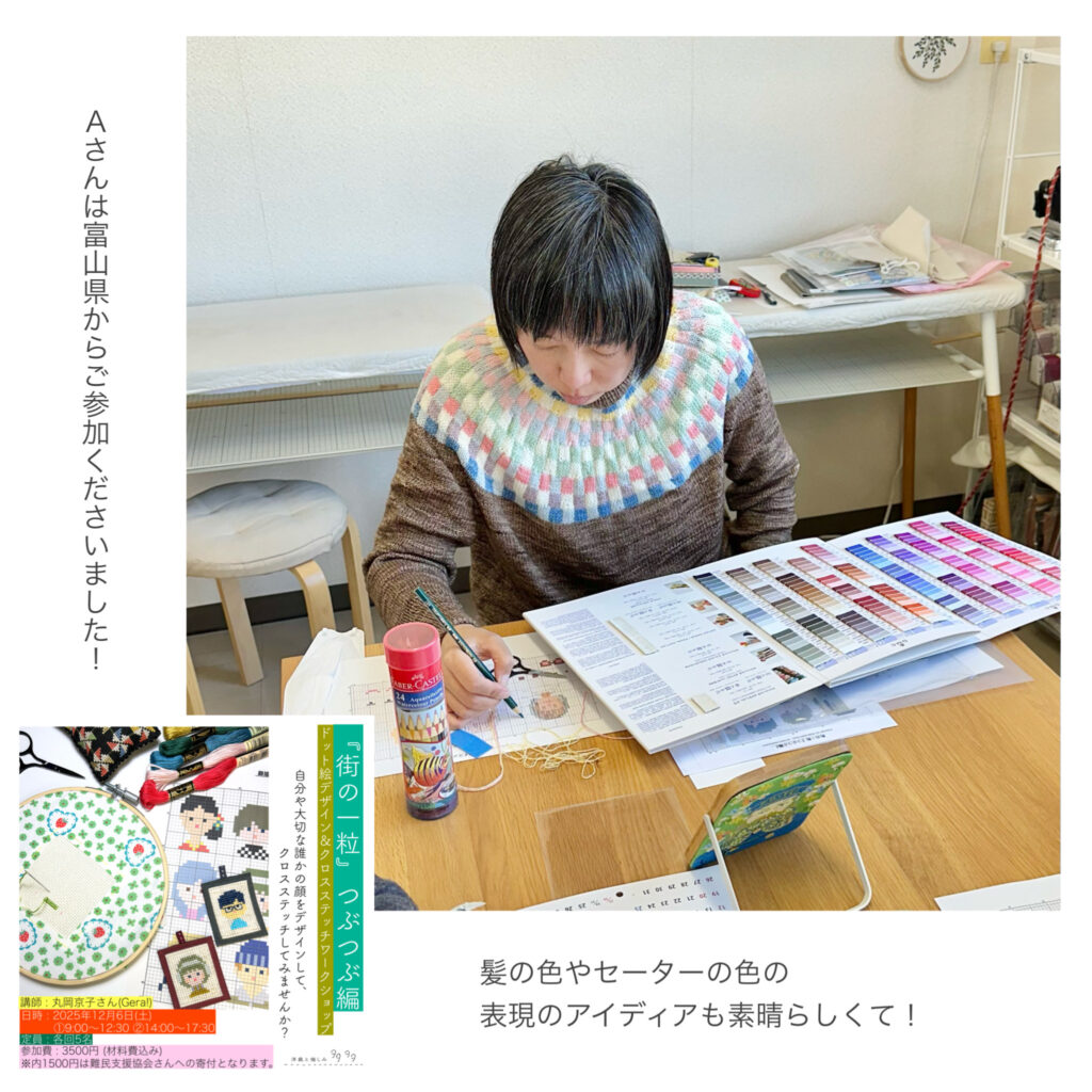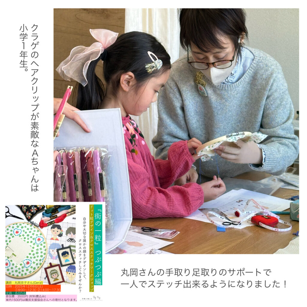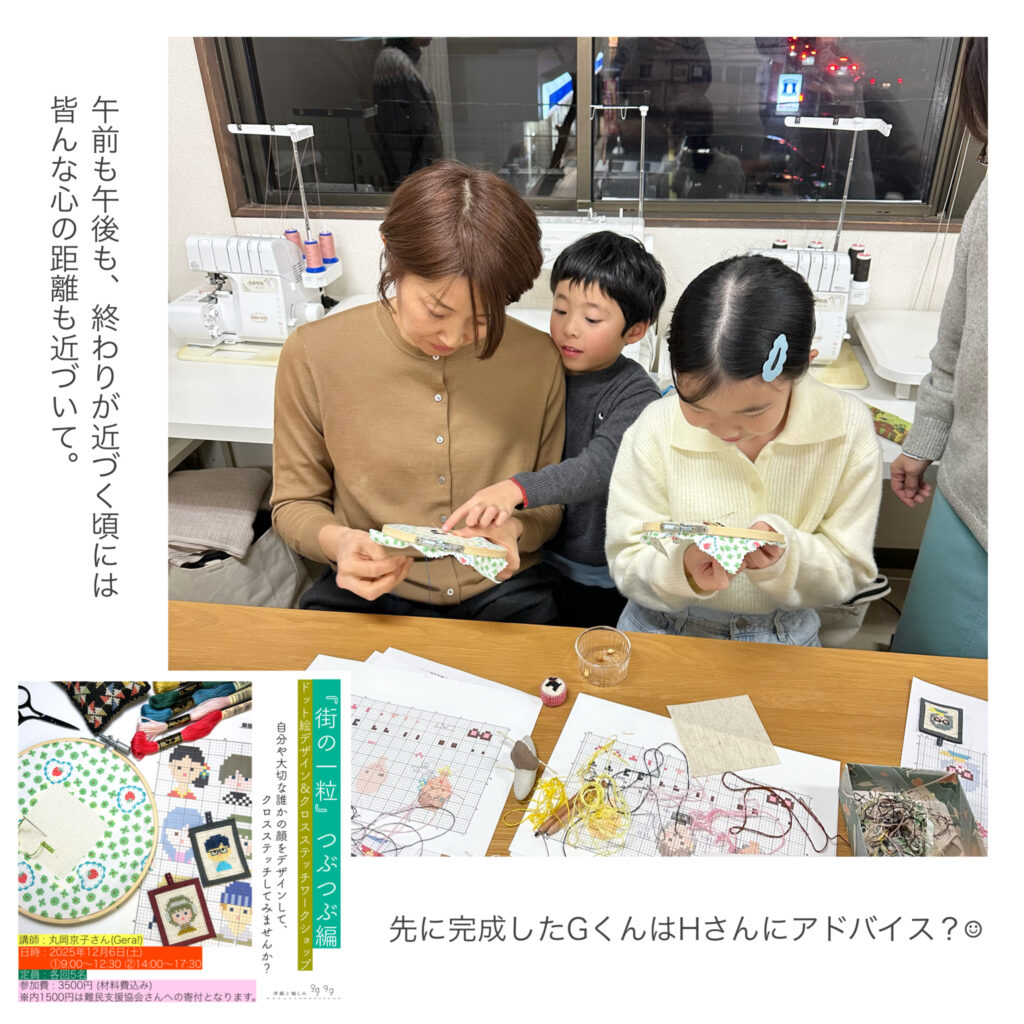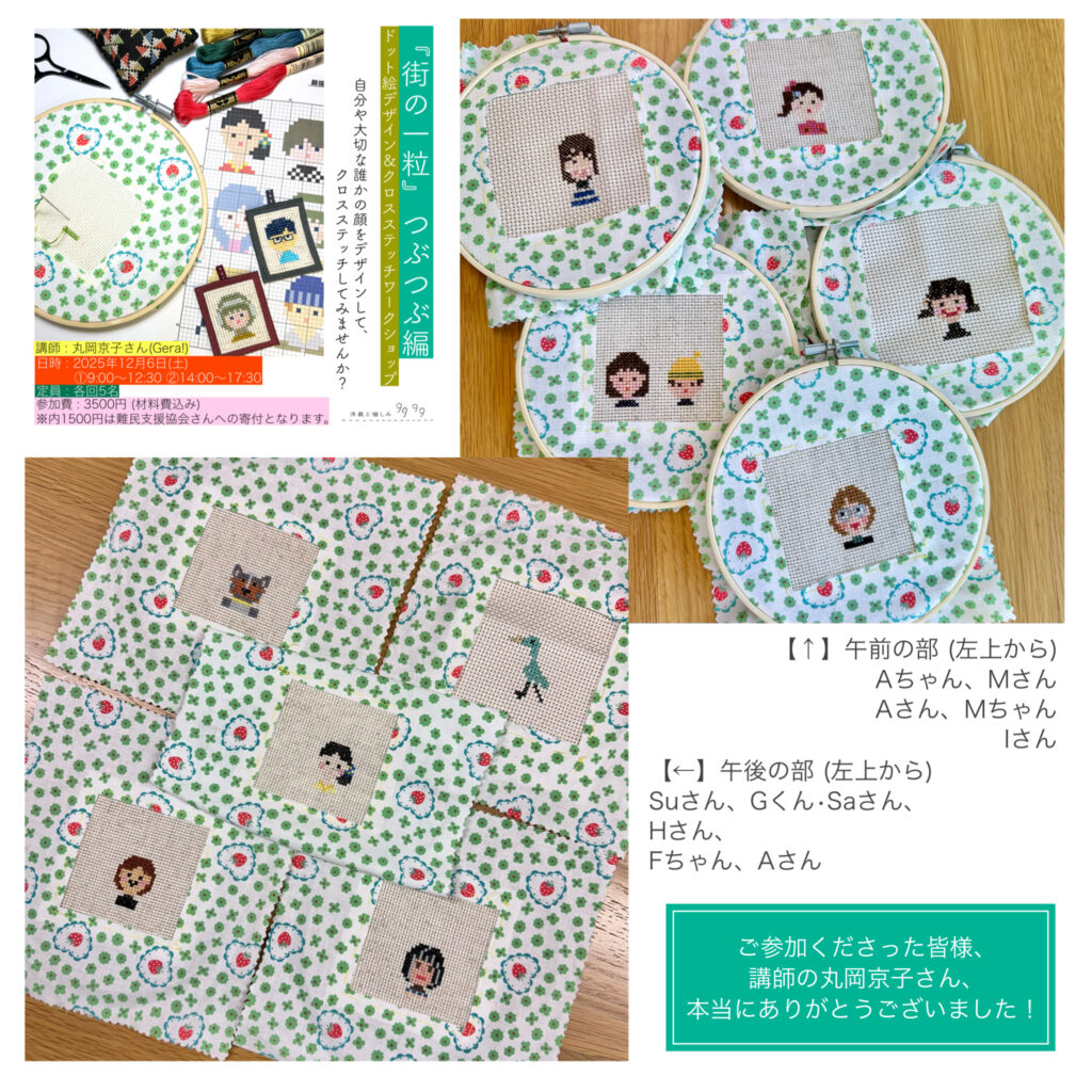 一昨日開催した『街の一粒』つぶつぶ編「クロスステッチワークショップ」。