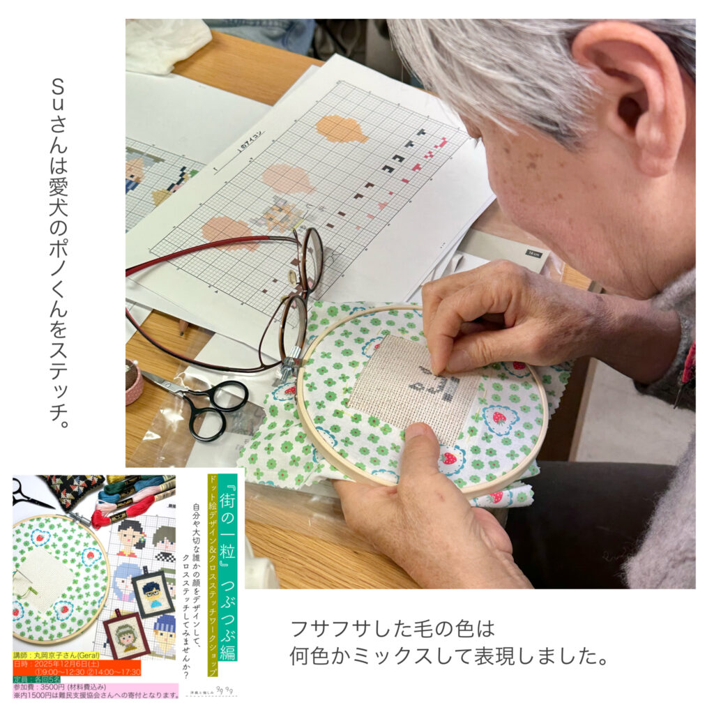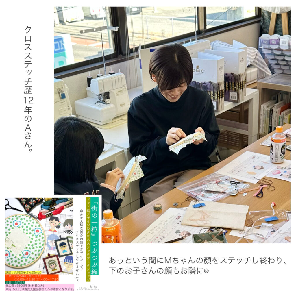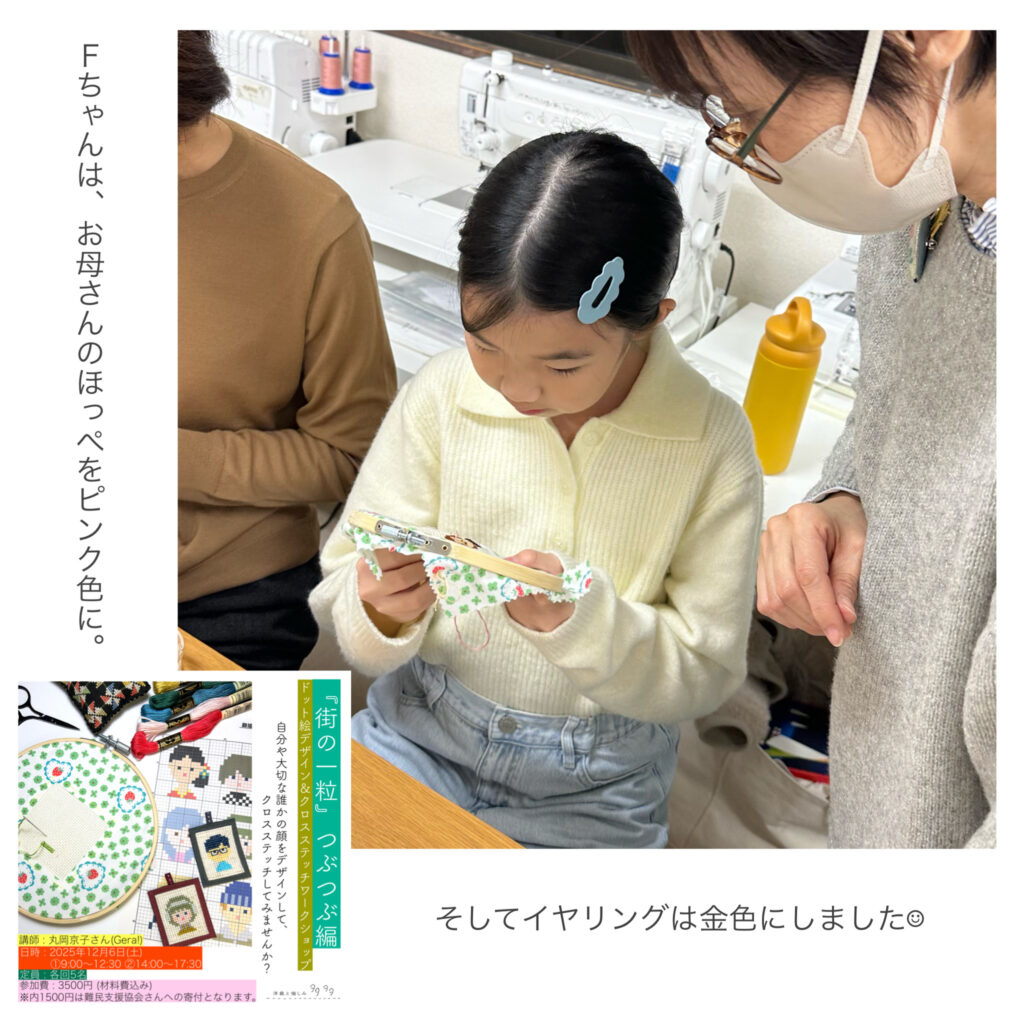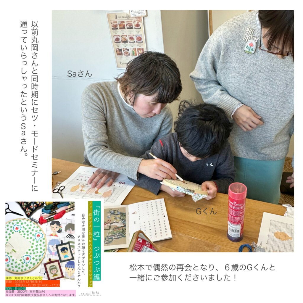 一昨日開催した『街の一粒』つぶつぶ編「クロスステッチワークショップ」。