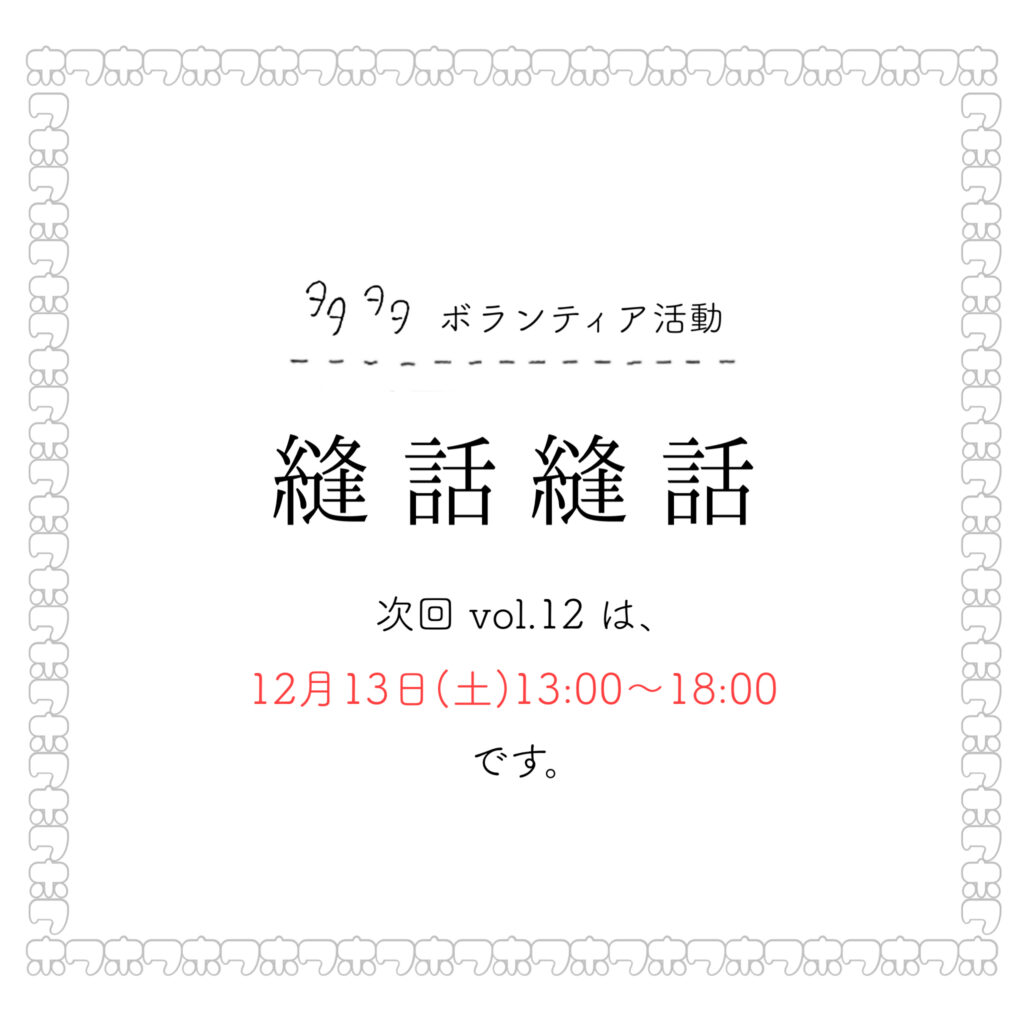 今週土曜日の午後は、”縫う”ボランティア活動「縫話縫話vol.12」を開催いたします。