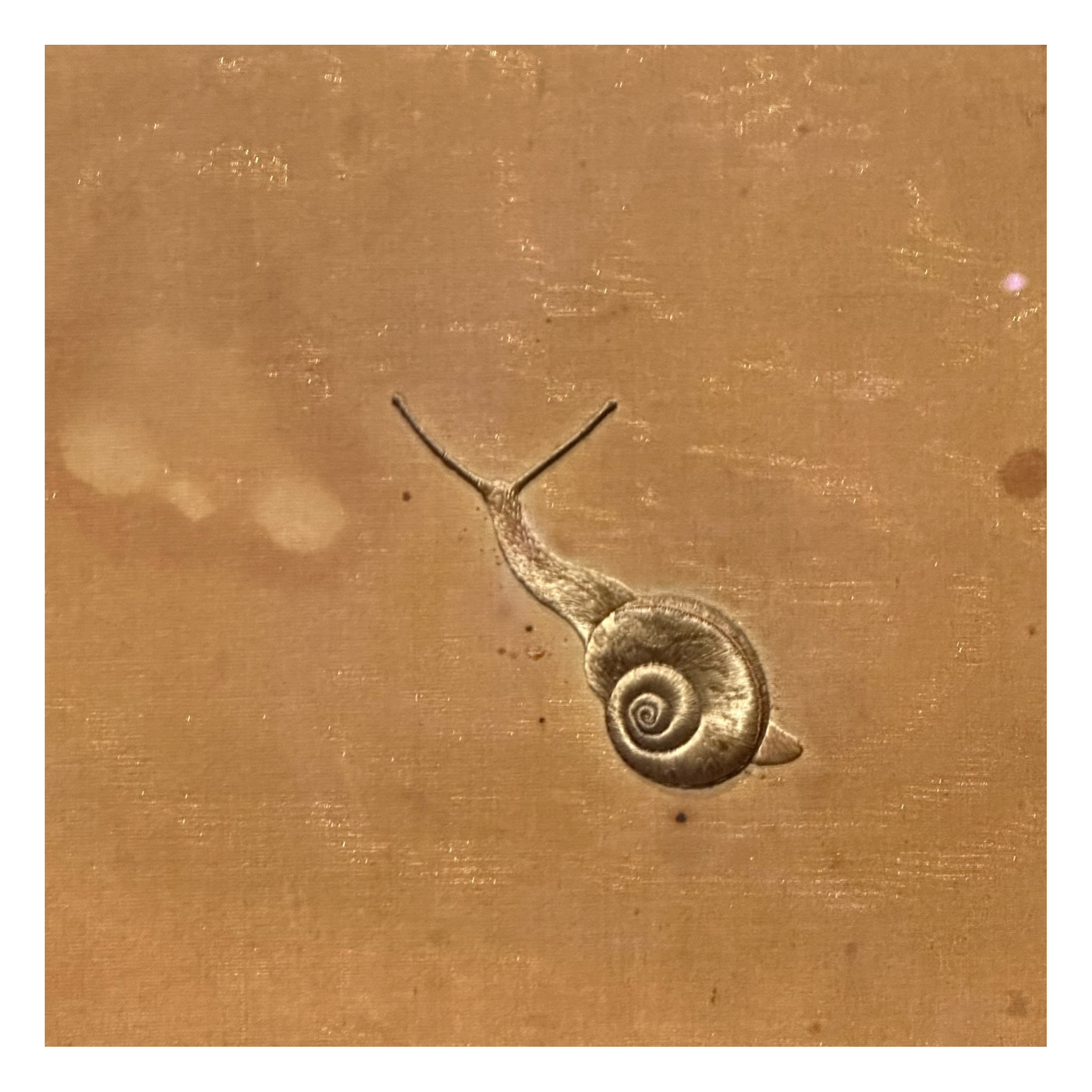 広い布の真ん中あたりに刺繍されたカタツムリ🐌