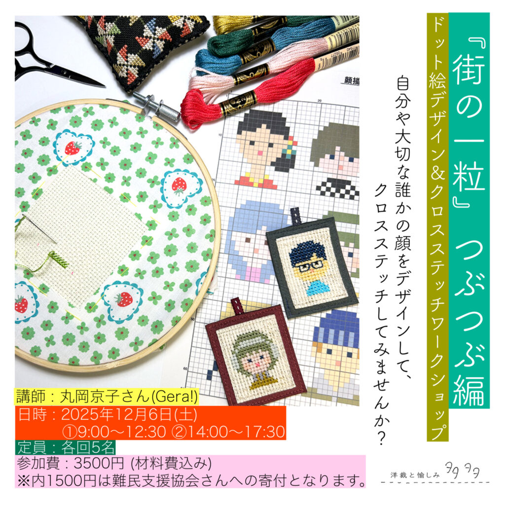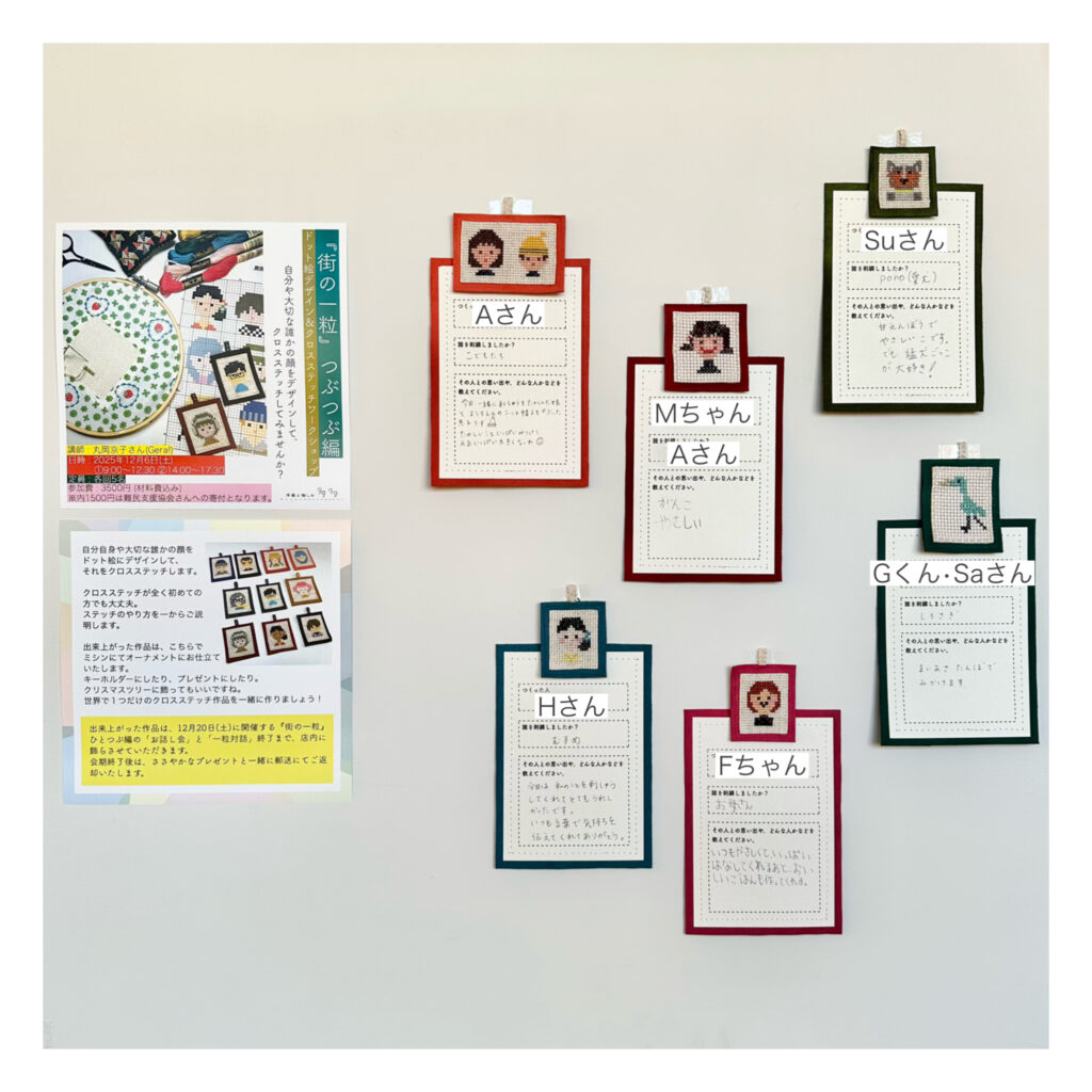 今日から最終営業日の12/20(土)まで、先日開催したクロスステッチワークショップの作品展を開催いたします。