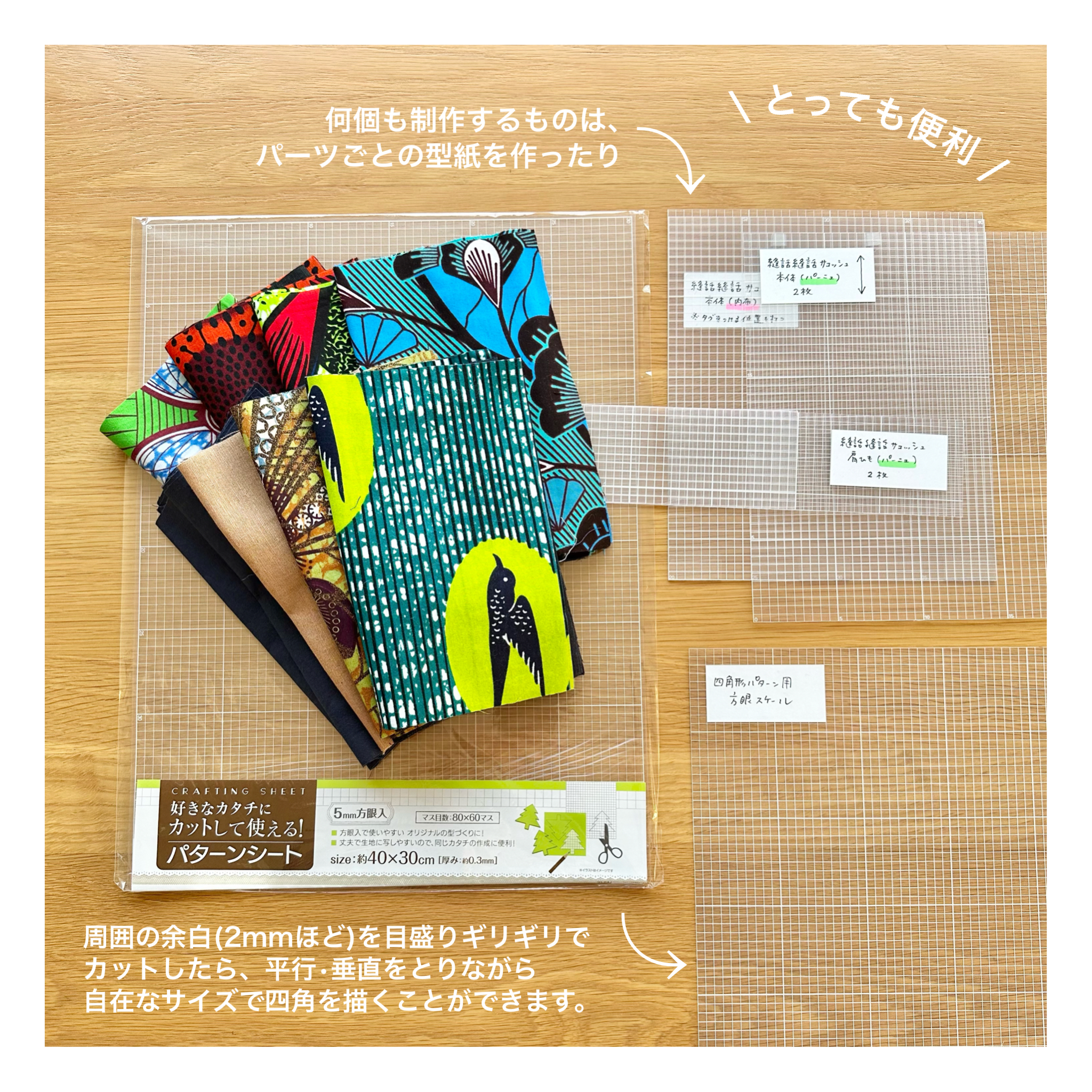 さらに透明なので、柄を見ながら裁断する位置を決めることができる優れもの。