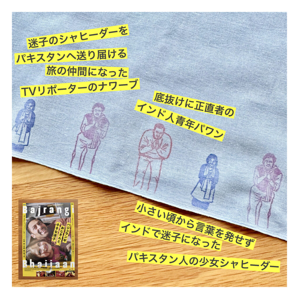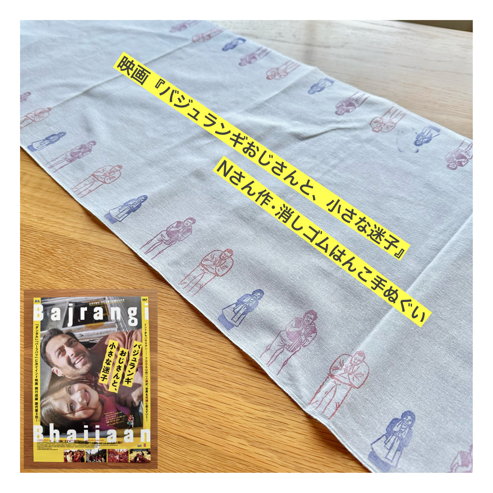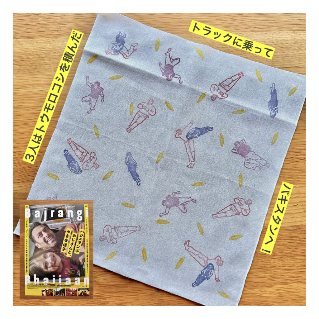 Nさんから沢山のインド映画を教えてもらいましたが、特に胸に残る『バジュランギおじさんと、小さな迷子』のはんこを使い、途中映画のシーンを思い出したりしておしゃべりしながら、私は手ぬぐいとミニハンカチを作らせてもらいました🌽