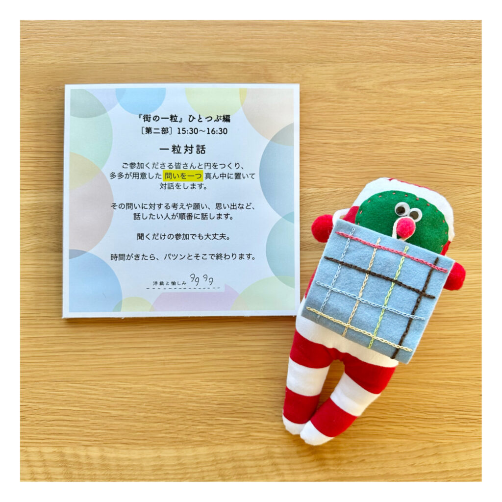 明後日の午後に開催する『街の一粒』ひとつぶ編の「お話し会」と「一粒対話」の準備を進めています。