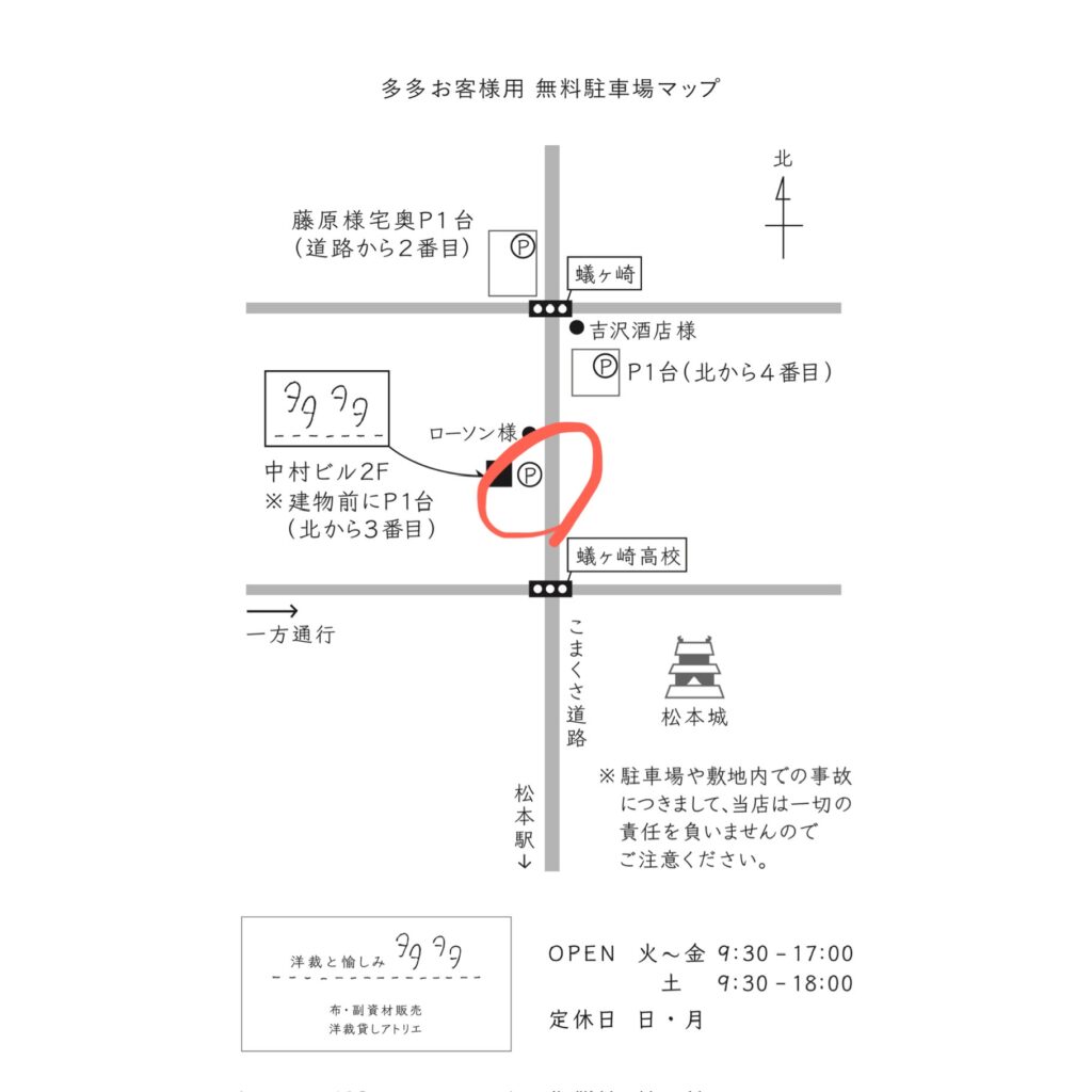 ご来店のお客様駐車場は、本日は多多の入る【中村ビル前の多多駐車場の1箇所のみ】となります。