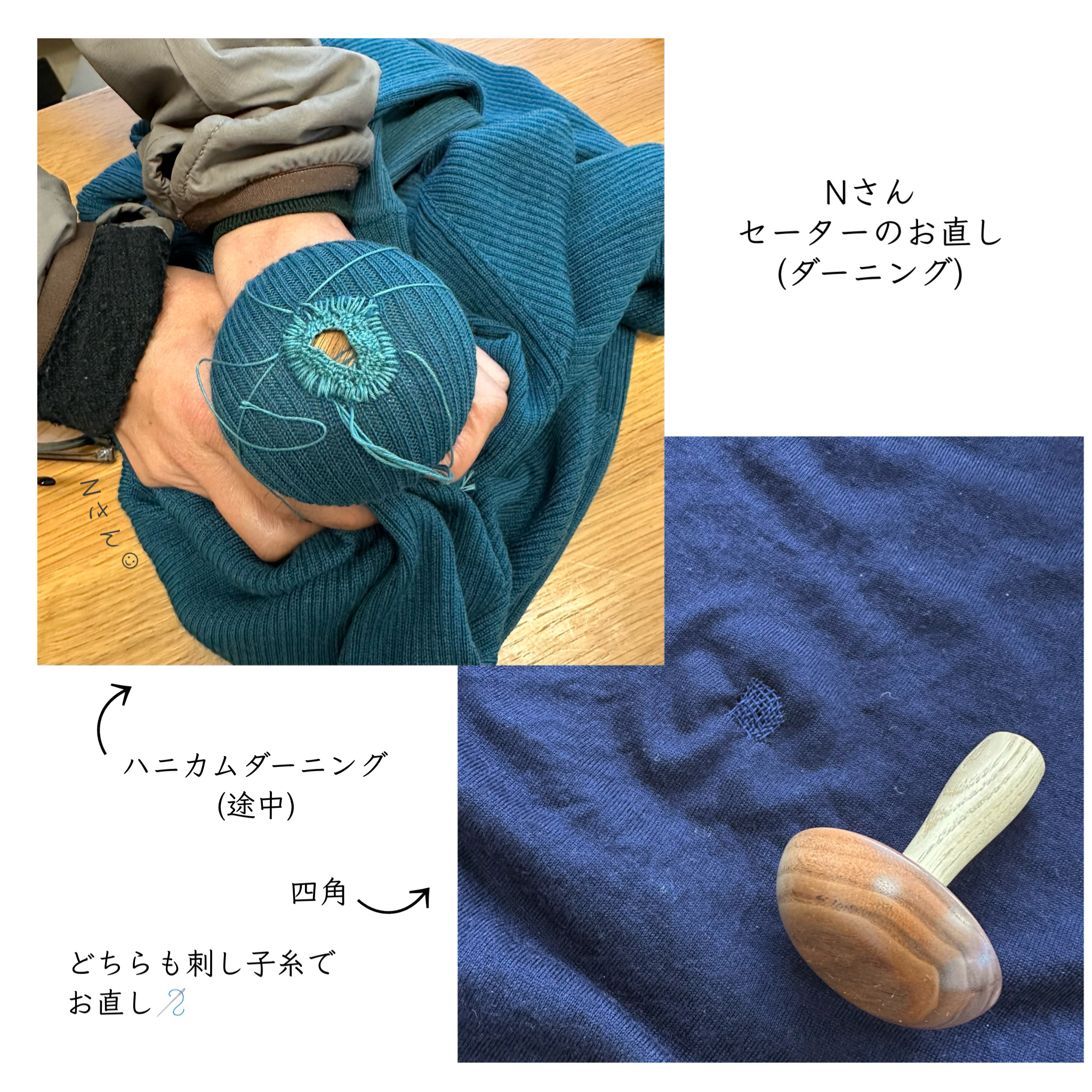 お直しの楽しさを知ると、セーターや靴下の穴や薄くなった部分が輝きだす不思議😽