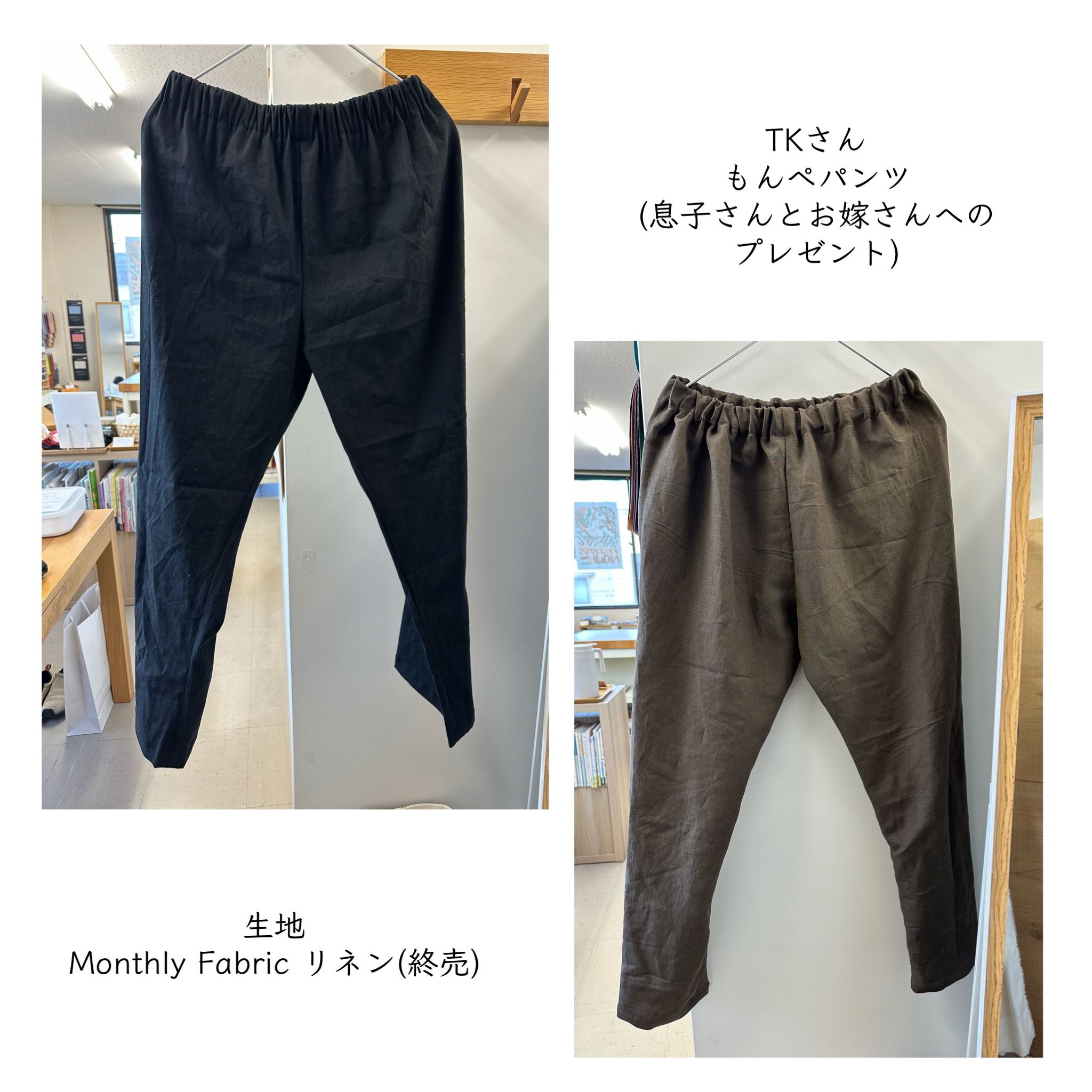 ご親族にも好評だという”うなぎの寝床”さんの型紙のもんぺパンツ👖