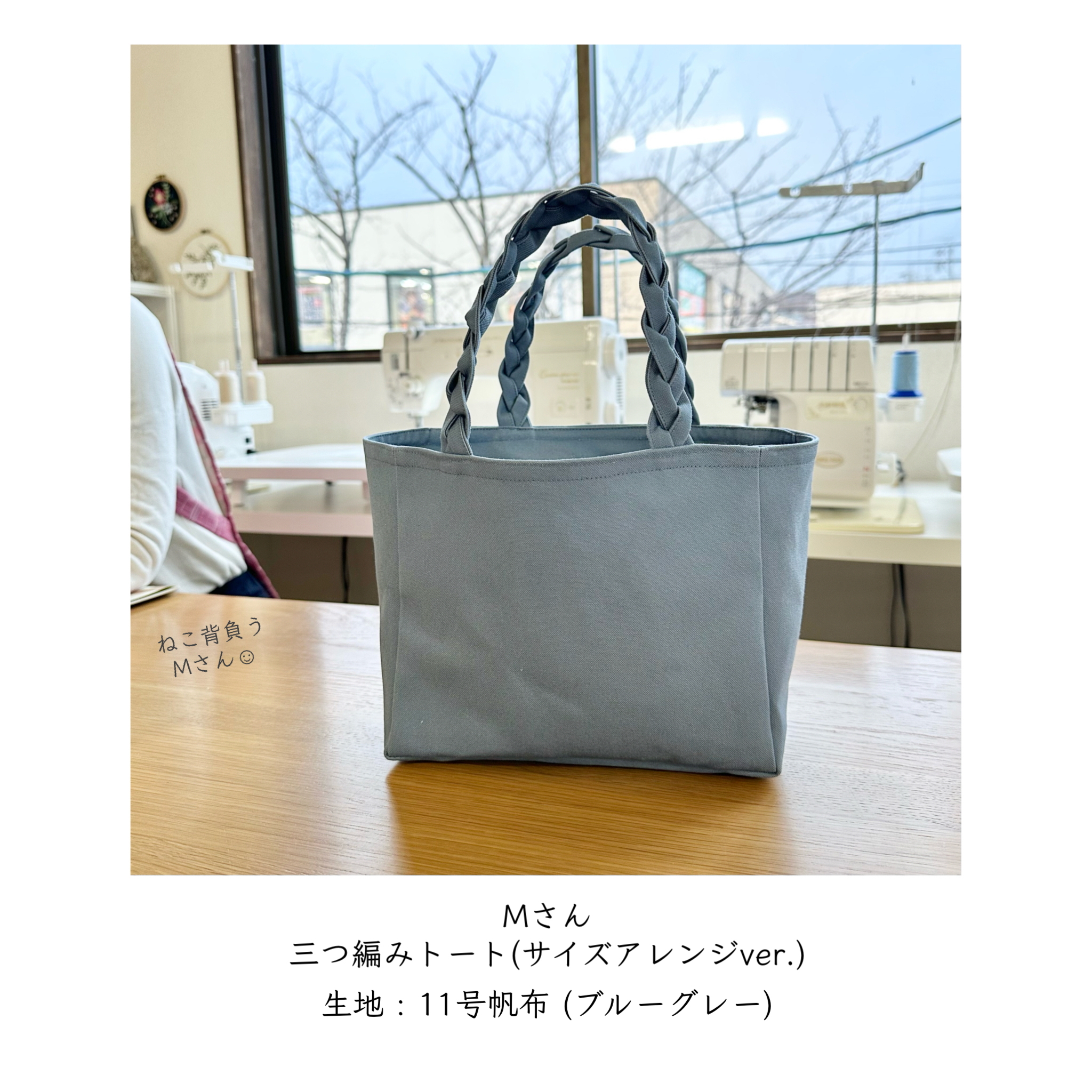 帆布を二重にして作る三つ編みトートの形を選ばれました。