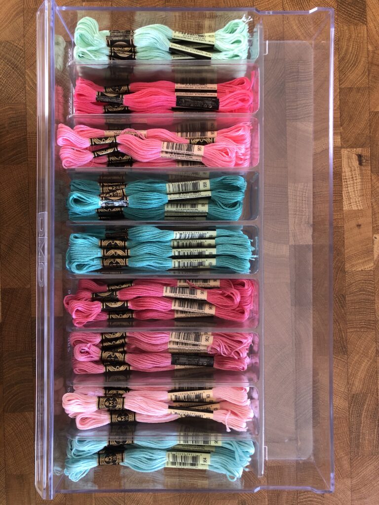 「多多の刺繍糸の引き出しを開けたら並んでいた色の合わせがめちゃくちゃ好みだったこと。」