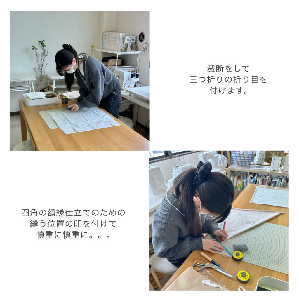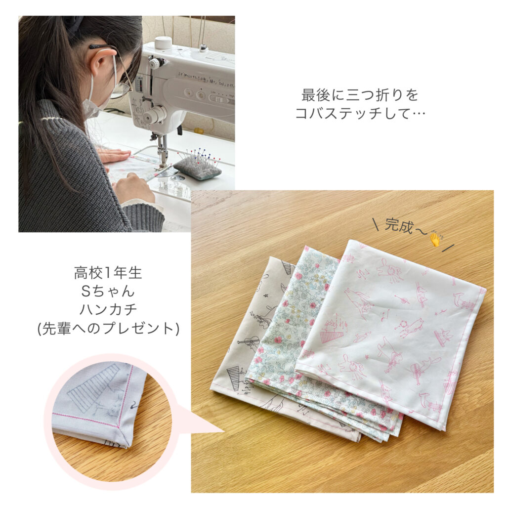 卒業する先輩方への手作りのプレゼントを…とのことで、ハンカチを制作。