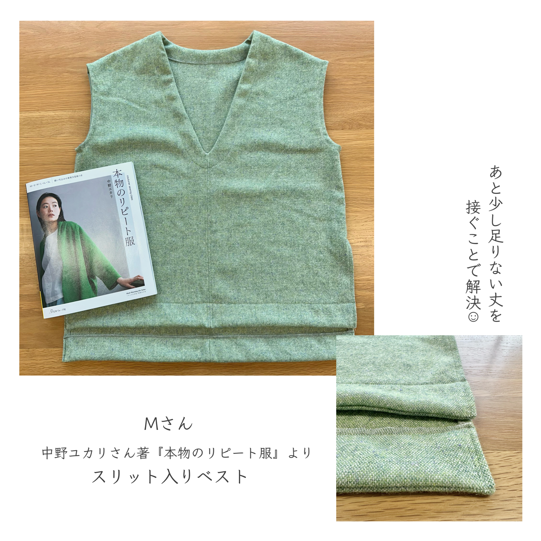 服作りの後、残った生地も活かすべく、ベストを作られたMさん。