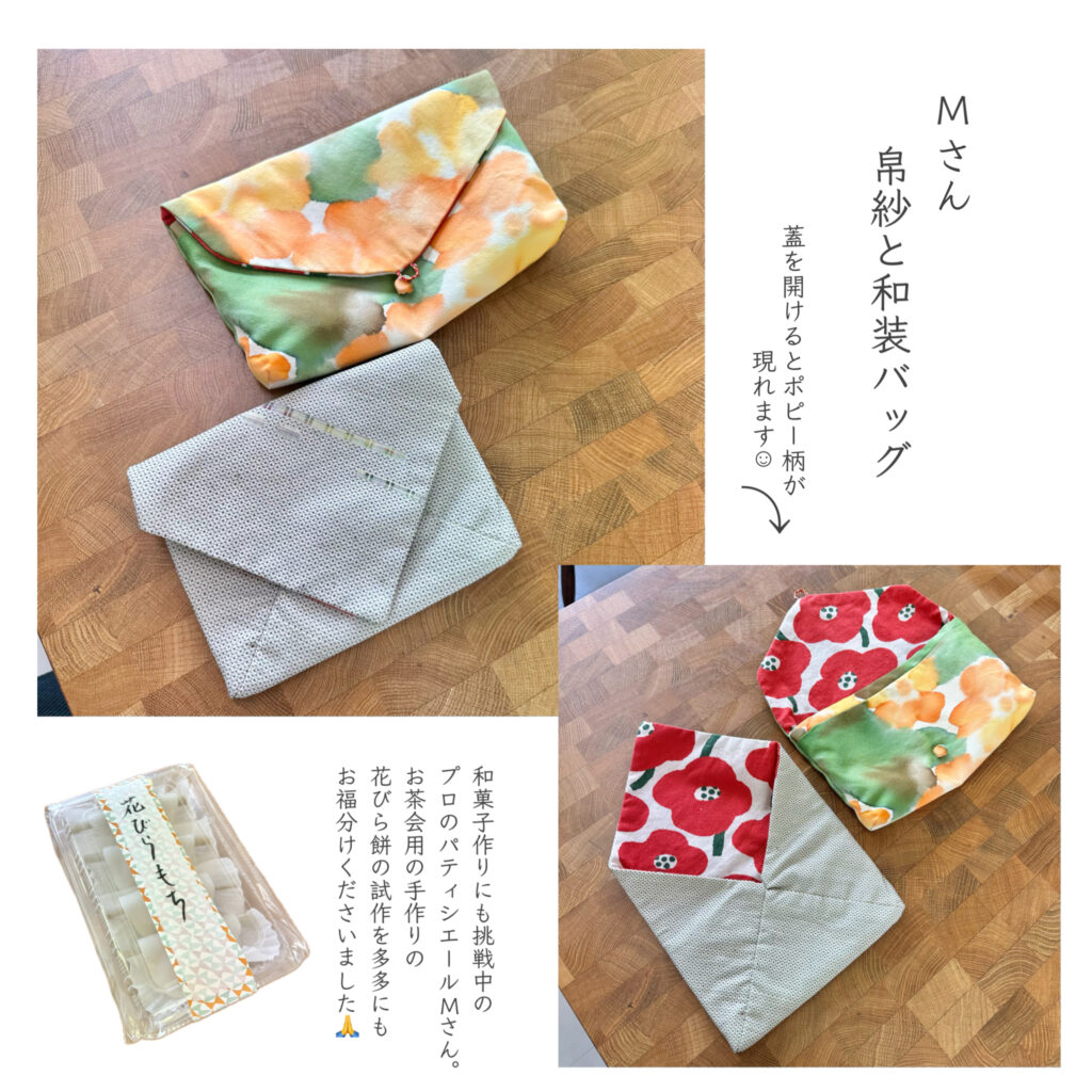 昨年からお茶を習い始めたというMさん。 和装の小物作りにもチャレンジしたいとのことだったので、多多にあるねこの材料セット作りで半端に残ってしまっていた着物地を... -