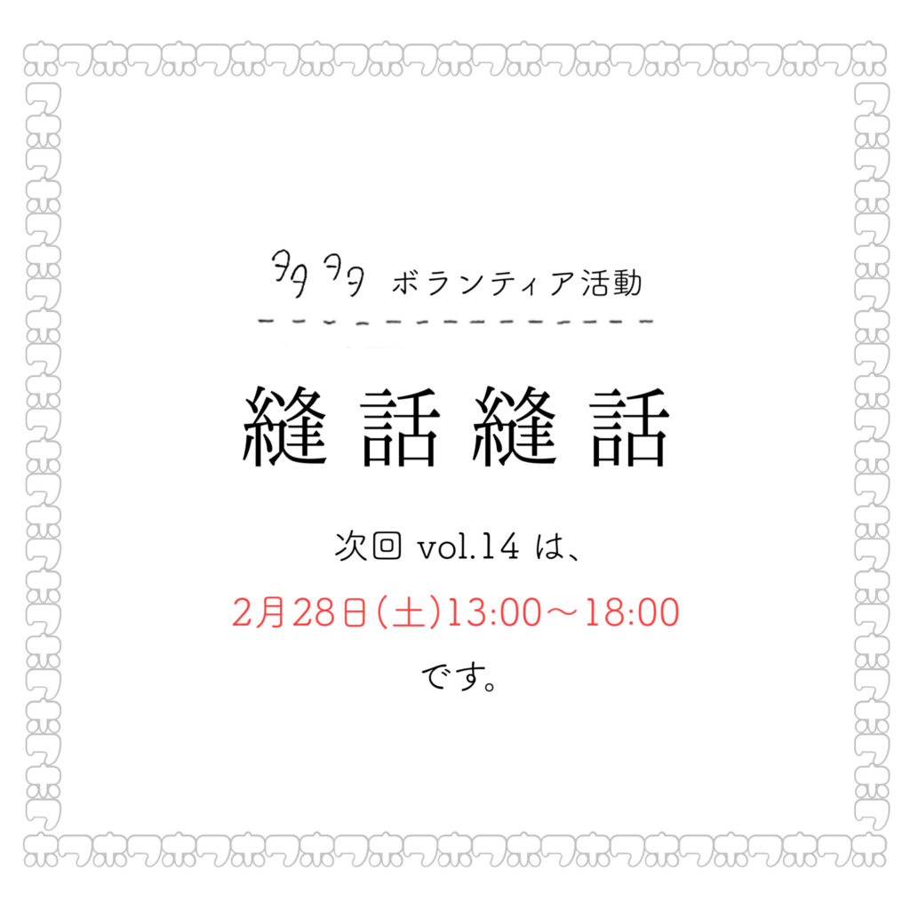 おはようございます。 今週土曜日の午後は、縫うボランティア活動「縫話縫話vol.14」を開催いたします。 裁断済みのサコッシュの他、ペンケースやポーチを作っていきた... -