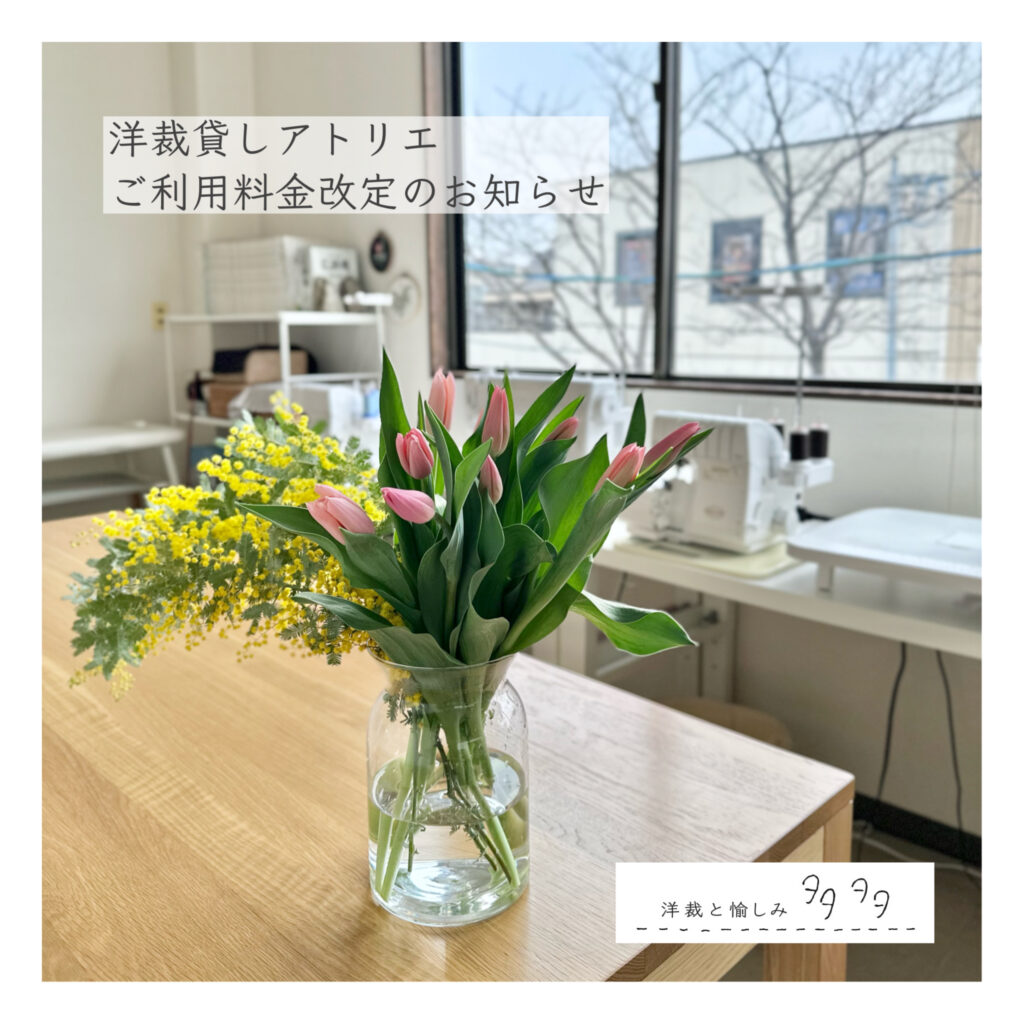 大変心苦しいお願いとなりますが、来月より洋裁貸しアトリエのご利用料金を改定させていただきます。 ご自身で作りたいものを選び、材料も選び、道具の基本的な使い方や... -