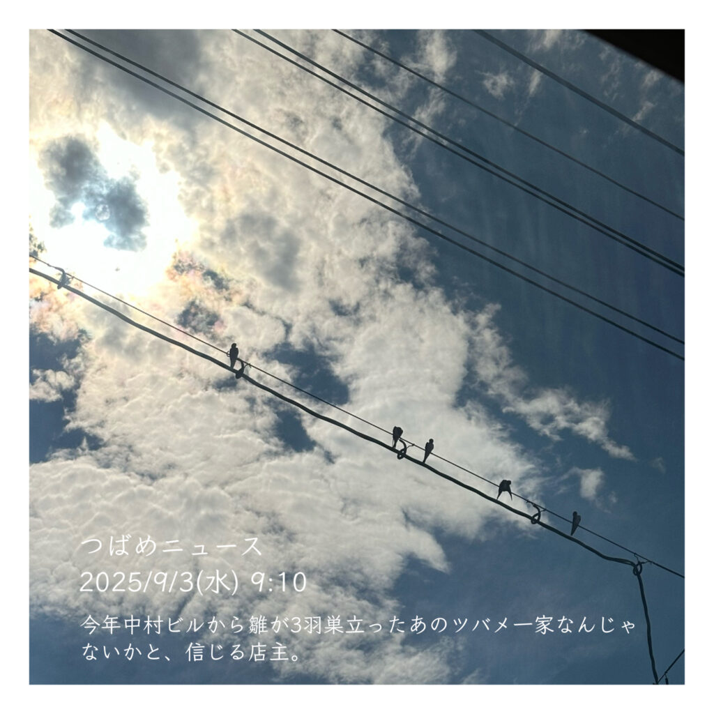 中村ビル入り口のツバメ一家の🐥さんたち。 最後の1羽のやぁちゃんも置いて行かれやしないか心配しましたが、昨日全員無事に巣立ちました! そしてお昼前。 お店の東窓の... -